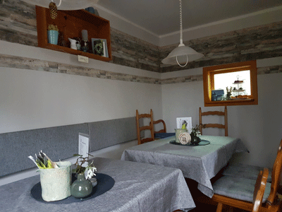 Es ist Ihnen in unserem Freisitz zu kalt, dann nutzen Sie unseren gemütlichen Gastraum der bis zu 18 Personen Platz bietet.